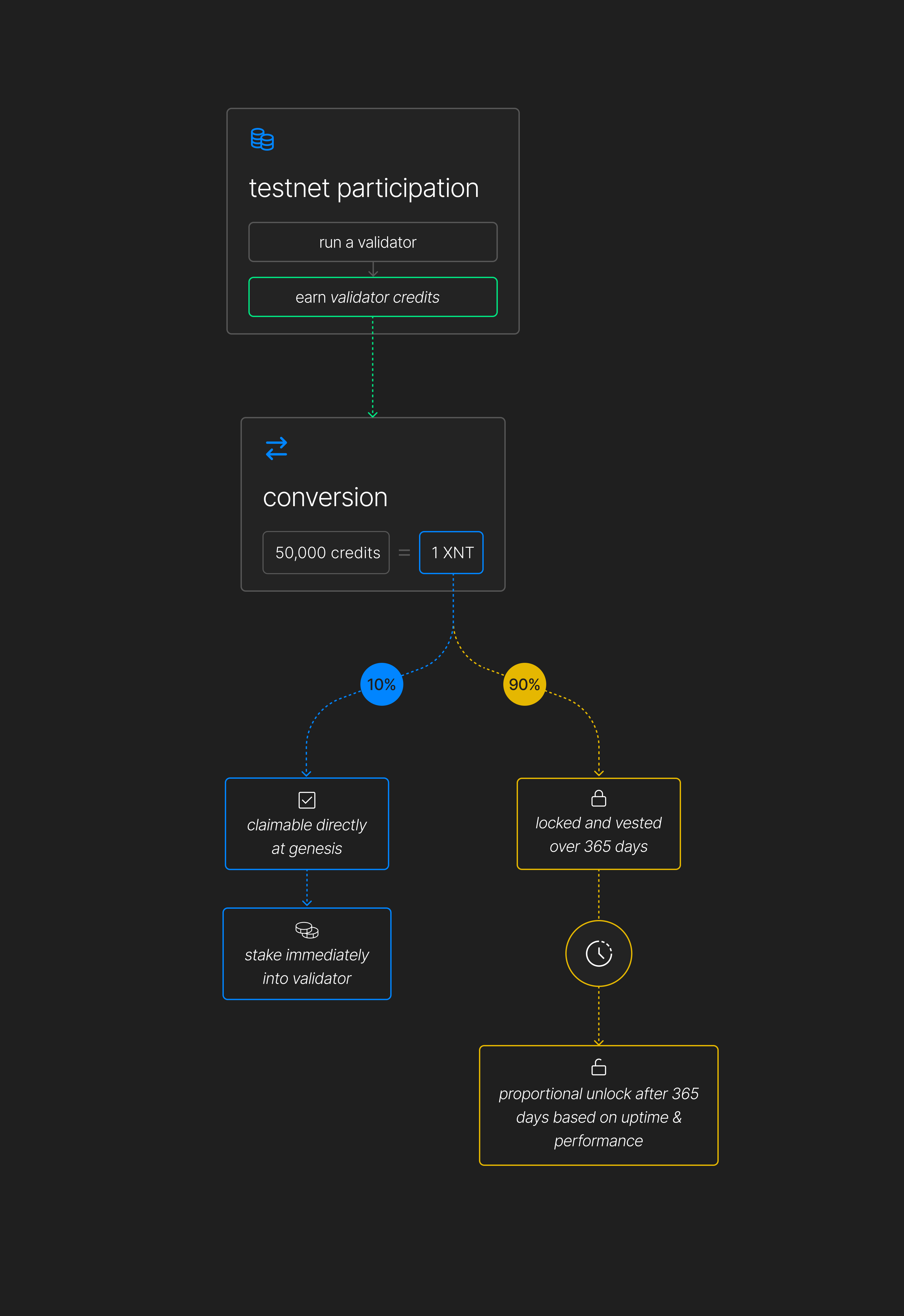The remaining 90% of earned XNT will be subject to a 365-day lock with vesting.